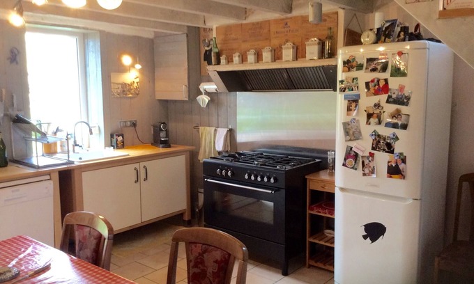 Beautiful farmhouse period of comfort, stone 18th century, with kitchen, living room with flat screen tv, washing machine, dryer, dishwasher, microwave oven, five gas stove with oven electric, iron with table, fridge with freezer, pots and plates cutlery provided etc ... 3 beautiful rooms and bathroom completely renovated.