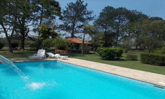 Beautiful, quiet and cozy farm in the interior of São Paulo, house for 10 people, with beautiful balcony and hammocks, swimming pool, orchard, soccer field, kiosk with barbecue. The house has 4 bedrooms and one suite with air conditioning and bath, another 2 bedrooms with double beds and one with 1 bunk bed. Room with three environments and fireplace! The space is great for families on weekends, vacations and holidays, has grocery store and butcher shop nearby! Quiet city, great place in winter or summer!