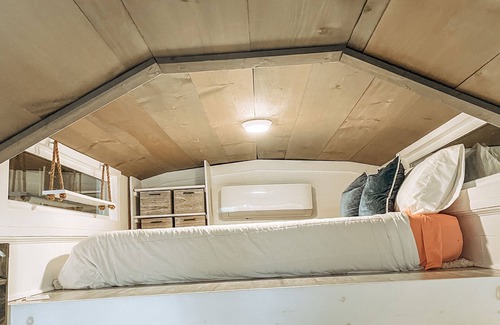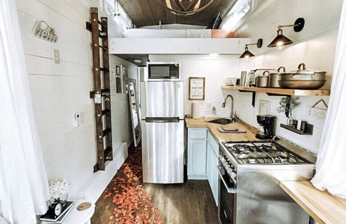 Enjoy the sounds of nature when you stay in this unique tiny home! With a wonderful quiet RV park including a community fire pit and free morning coffee!