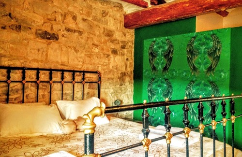 Enjoy in the common areas of the house like the impressive barn with a full kitchen ,bar and complete with an open fireplace and sitting room offers guests the perfect place to relax . The vaulted stone wine cellar is next to the the Roman-style swimming pool. Rocallaura is a small, traditional village in the Catalan countryside famous for the healing properties of its spring water. Rocallaura is on 'La Ruta del Cister', an important historic route which links three 12th century Cistercian monasteries. In the town there is a little charming bar restaurant called "Rocallaura Cafe" were Marsiela and Enio will welcome you with a big smile and fabulous menus.