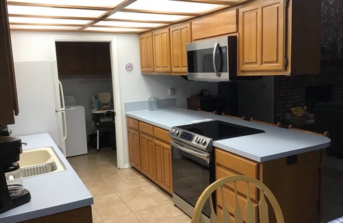 Perfect for a quiet family getaway or a gathering of two or three families for a family reunion. Five bedrooms allow room for everyone with one master bedroom and full bath upstairs, two bedrooms on main floor with full bath and two bedrooms downstairs for the kids or more guest. Three floors with lots of room to spread out and do your own thing.