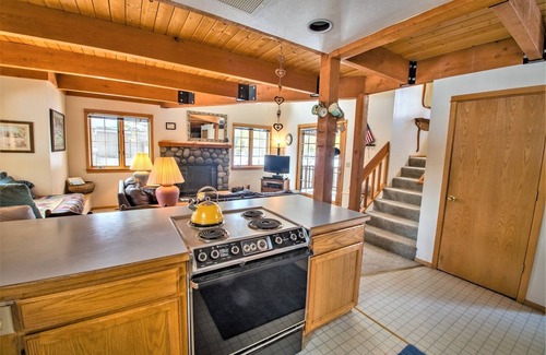 This 2 level home features natural wood touches throughout, even on the ceiling, and the river rock surrounding the wood-burning fireplace gives this home the lodge feeling you look for in a Sunriver vacation home. Outdoors there is a large deck area with a hot tub, gas BBQ and bikes in the Garage. In the Living room you will find a window seat, a couch, and a love seat. With such ample room for the humans in your party to unwind with. No one will feel out of place. The Kitchen has every amenity and cooking ware that the cook in your family could possibly need.