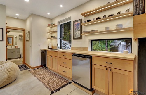 This beautiful and newly remodeled cabin is located just a five minute walk from Alyeska's Daylodge. After a day of adventure, return to your stylish and well appointed cabin. Fire up the grill and enjoy a home cooked meal from our fully-stocked kitchen, then relax in a wood-fired sauna nestled in the woods.