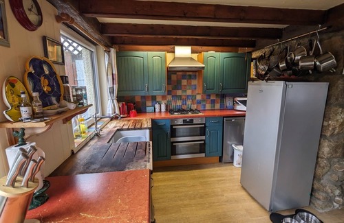 End of terrace cottage with many exposed granite walls and wooden beams. Sunroom at the front. 2 double bedrooms and 1 bedroom with bunk beds. Bathroom with toilet, bath and shower. Second toilet. Open plan downstairs with lounge/diner and kitchen. The dining table comfortably seats 6. There is a piano which you are welcome to play. Central heating and log burner. Fully enclosed garden with lawn, patio and decking area. There is off road parking for several cars.