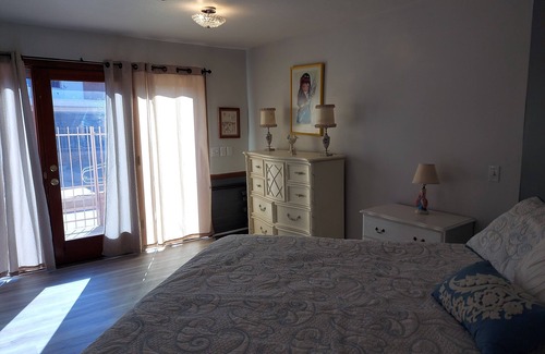 Arizona room with fireplace and queen sized sofa sleeper can double as third bedroom.