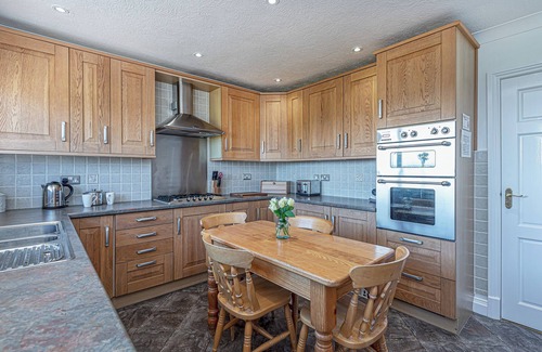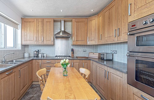 Gas central heating with gas fire, Electric oven and gas hob, microwave, fridge/freezer, washer/dryer, dishwasher, TV with Freeview, DVD and WiFi. Fuel and power inc. in rent. Bed linen and towels inc. in rent. Off road parking for four cars and space for a boat. Large lawned garden with furniture and BBQ with fantastic sea views. Pub 10 mins walk, shops 3 miles. Beach 15 mins walk.