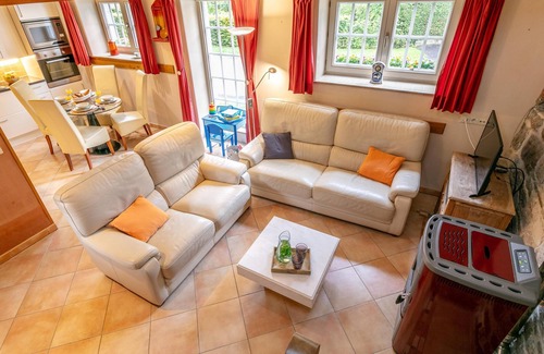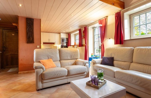 In the heart of the Ardennes lies this cosy Ardennes house from the 19th century. You can prepare the tastiest meals in the well-equipped kitchen and the stove in the living room creates a warm atmosphere. The jacuzzi ensures relaxation in all seasons and is always ready for use. In addition, you can cook outside on the plancha in summer and winter and enjoy a delicious drink under the covered terrace. The unique IR sauna located in one of the bedrooms is a nice extra