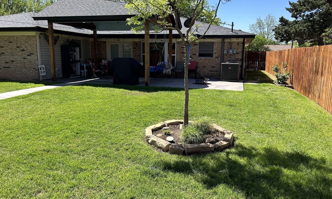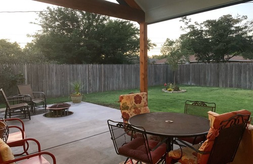 Long term renters welcomed. I will require house to be cleaned once a week for extra $60.00. The house is in a very a quiet neighborhood and conveniently located in the middle of Amarillo. Fresh new paint, new windows and blinds throughout the house. The kitchen is fully stocked ( excluding food). The Washer/dryer are for any guest that stays. Laundry soap provided. The garage has 1 space available for guests to park in while visiting. The house will sleep 8 comfortably with a roll-a-way bed in Master Closet and a pullout couch (linens under chaise lounge. The large backyard has plenty of room for the kids to play and run off their energy with a privacy fence. The Mulberry tree in front provides lots of shade during the long, hot days of summer. You will have access to the gas fireplace for those cold winter nights or the fire table. Please turn propane off when you are finished using the grill and fire table. If you use grill, make sure to clean it afterwards , for the next guest. There are family games located in the entertainment center in the Living Room. Please put them back as you found them. The books in Living Room are for your reading enjoyment.