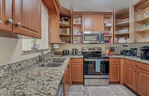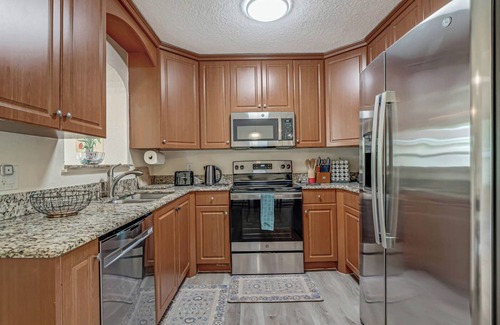 The kitchen offers stainless steel appliances and is ready for your culinary arts. Coffee, tea, and dishwashing liquid are provided.