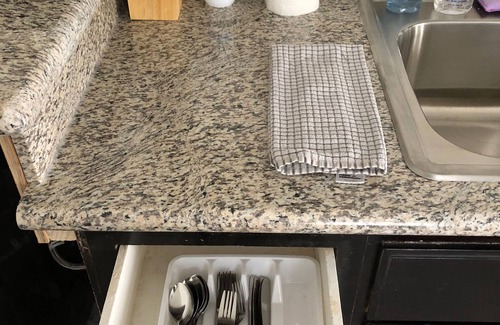 - Coffee maker, blender, toaster, pots, pans, silverware are all provided