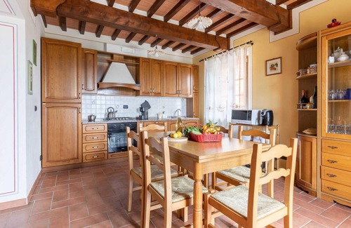 North of Lucca, in a charming hilly landscape, this secluded vacation home welcomes you. Inside, you'll find comfortably furnished rooms that make a rustic impression and provide the perfect setting for relaxing vacations. Both indoors and outdoors, the house has a variety of great facilities to offer for young and old.