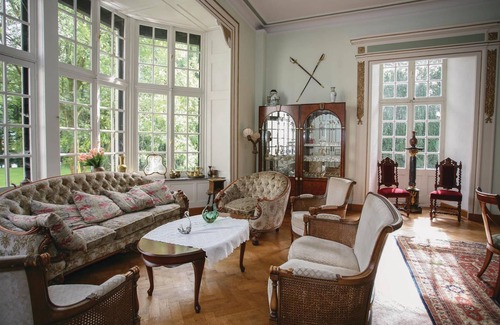 This remarkable property boasts various amenities perfect for hosting your wedding and accommodating guests. With nine spacious bedrooms, each exuding charm and comfort, you can enjoy peace and privacy while celebrating with family and friends. The castle features a delightful garden, a cozy cellar pub, and a hall in the carriage house suitable for meetings or recreational activities. Guests can also indulge in the luxury of a sauna and enjoy outdoor games such as a giant swing and trampoline, making it a versatile location for both wedding festivities and leisurely relaxation. The on-site owner is more than happy to assist in arranging catering, music, and decor, ensuring every detail aligns with your vision.