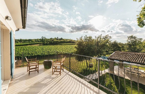 Villa Kanedolo is situated in an idyllic location not far from the romantic town of Momjan. The villa is surrounded by romantic vineyards that are irresistibly reminiscent of Tuscany and invite you to fall in love with Istria. The house itself has been furnished in a mixture of traditional country style and modern style. The villa can accommodate up to 9 people and consists of 3 floors. The bright open-plan living/dining area with kitchen is located on the ground floor, as is the guest WC. The 4 bedrooms and 3 bathrooms are distributed over the 2 upper floors. 2 bedrooms, one with en-suite bathroom, are located on the first floor together with a separate bathroom. The other two bedrooms, which share a bathroom, are located on the second floor. From the terrace on the upper floor there is a wonderful view of the vineyards and the romantic surroundings. In front of the living room and kitchen is a covered terrace with a cosy lounge area, ideal for a morning coffee or watching sunsets with a glass of Istrian Malvazija. An outdoor kitchen with barbecue and covered dining area is located between the pool and the villa. The beautiful private pool is also surrounded by nature and offers excellent refreshment during the warm summer days. Enjoy your holiday in this enchanting piece of Istrian paradise! :)