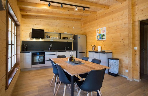 Modern interior, good beds and beautiful scenery - all this you will find in this beautiful wooden vacation house in Plitvicka jezera-Slunj. Inside the house you will meet a lot of wood, combined with high quality and modern furniture. The kitchen, living room and dining area are all in one room, allowing for a nice open atmosphere and plenty of companionship.