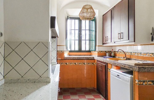 If you are looking for relaxation and recreation in the countryside with your extended family, this spacious vacation home is the place for you! Arrive at this beautiful house and let yourself be enchanted by the charm of the house and linger together in the large living room, which offers a special atmosphere with colorful windows and high ceilings while eating, playing and relaxing. Also in the bedrooms on the 1st floor, the distinctive wooden ceiling and authentic wooden doors will delight you and immerse you in the Andalusian flair of the house.