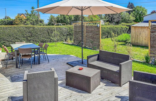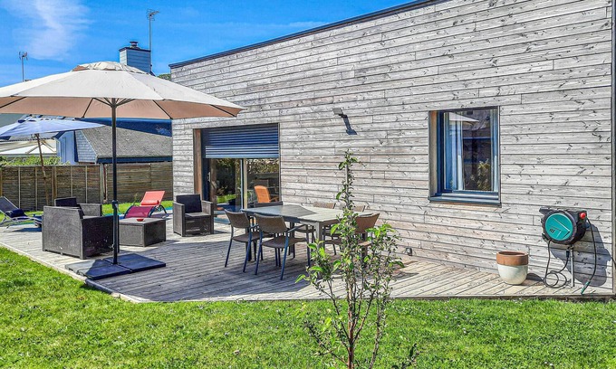 This modern wooden built house offers you and your family plenty of space to spread out and fully enjoy the French summer. In the well-distributed and spacious cottage you can look forward to the quiet morning hours at breakfast and sunrise, while during the day you have private garden with wooden veranda. Thus, you can enjoy sunbathing, long walks or enjoy the evening hours with a freshly caught fish on the grill together in a pleasant atmosphere with your loved ones. Even beaches like "Plage de Poulguen" are only 6 km or Kéroun, a fine sandy beach, 6.9 km away from you.