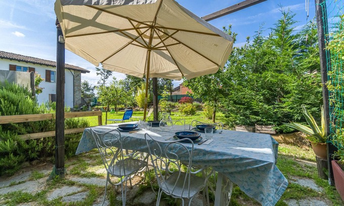 Beautiful part of a two-family house, completely surrounded by nature and by vineyards, in the spectacular area of Monferrato, in a strategic position to visit the UNESCO World Heritage Sites. The green hills are home to villages and valleys to explore, ideal for those who want a break from the stressful daily life. The large outdoor area of the house is equipped with garden furniture, barbecue and thermal oven where you can dine outside while your children have fun in the play area. The nearest town is Tortona (17 km). Genoa with its beautiful aquarium and ancient port is 70 km away. (Alessandria / Asti) Monferrato 40 km. Montemagno (60 km) is a village composed of twelve parts and is one of the "Castelli Aperti" (open castles) of the Piedmont region. At 30 km is the largest outlet in Europe with 240 stores with the most famous brands.
