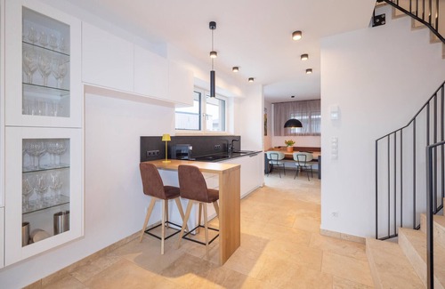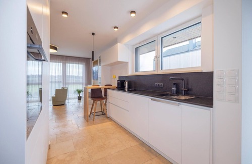 Surrounded by meadows, forests and fields, this fantastic vacation home promises you a great vacation. The light-flooded rooms welcome you with high-quality furnishings that give the entire accommodation a homely atmosphere. Choose your favorite kitchen or get together for game and movie nights in the living room.