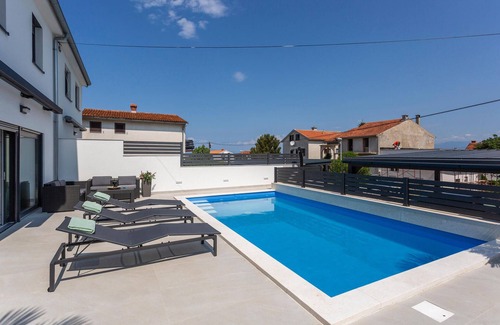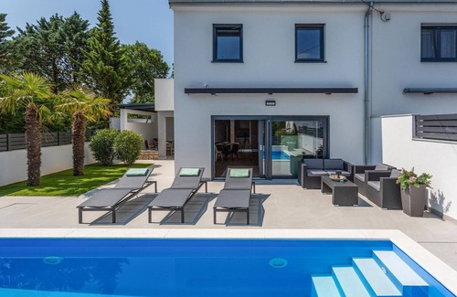On the popular sunny island of Krk welcomes you this modern and luxurious terraced house with swimming pool.
