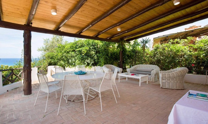 Holiday home in Parghelia, 3.5 km from Tropea and 100 m from the sea. The house is located inside a holiday complex with a private sandy beach for the guests of the complex only. The bright and welcoming house consists of three bedrooms, two bathrooms, a kitchen and a large living room and is ideal for groups of families who want to spend their holiday together. The comfortable and cosy terrace is partly covered and ideal for a relaxing read or a delicious aperitif at sunset while enjoying the magnificent view of the sea. In the nearby and well-known holiday resort of Tropea, you can go swimming in the crystal-clear sea, visit the sanctuary of Santa Maria dell'Isola or try the typical and spicy raw sausage Nduja and other delicacies prepared with the local red onion in the restaurants. From Tropea you can also embark on an unforgettable excursion to the Aeolian Islands. From the lighthouse in Capo Vaticano (15 km) you can see as far as the distant Aeolian Islands on clear days; Vibo Valentia (20 km) an ancient Greek colony rich in religious and civil architecture.