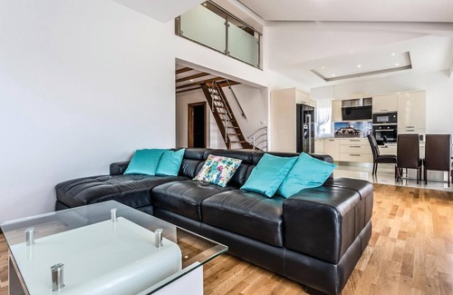 The luxurious villa is located in the small village of Stobre, near Split. Bright and modern interiors offer a pleasant stay on three floors. On the ground floor is the living area with access to the terrace and outdoor area where you will find a swimming pool, jacuzzi, gazebo with barbecue and a basement with garage (two parking spaces), plenty of space for fun, fitness and relaxation. The path to the beach is gently sloping. In consultation with the owner it is possible to rent bicycles, cars and boats as well as arrange transfers to the airport. The property with video surveillance as well as the house and each room can be entered with a card key. Visit the nearby city of Split and the fascinating Diocletian's Palace and enjoy an unmistakable Mediterranean flair. In the gallery on the upper floor of the house there is a multifunctional entertainment room with PS4 and XBox.