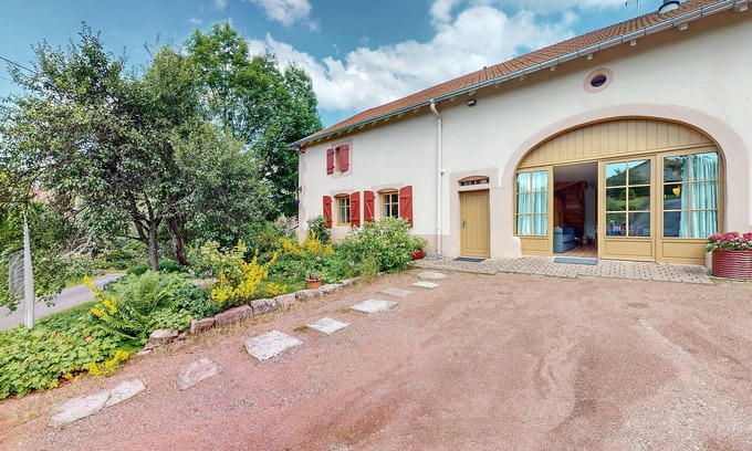 Welcome to the inviting and spacious holiday home with history, where you can relax surrounded by the beautiful landscape of the Vosges. Many special details make the house the ideal place to stay. Enjoy your time together in a cosy atmosphere and the beautiful view. Make yourself comfortable on the sofa in the evening after a good meal and chat for a long time by the open fire.