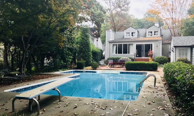 The main house contains three bedrooms and two bathrooms. The detached poolhouse is a studio with king size bed and private bath. This is a beautiful home in a quiet residential neighborhood in the heart of Buckhead close to restaurants, bars and everything Buckhead has to offer. You will completely forget you are in the middle of Atlanta. We look forward to having you.We have a full kitchen and large entertaining area for your to enjoy. The backyard is spacious with lovely pool and grassy area.