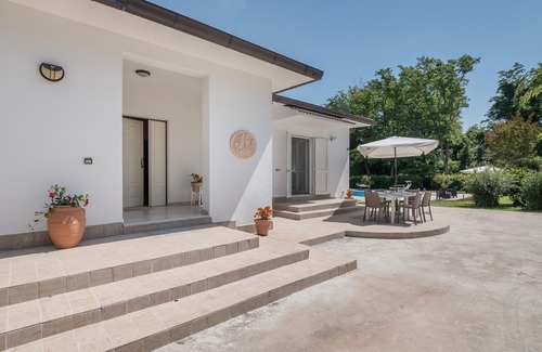 At the foot of Montecassino, this bright and friendly vacation home with a large outdoor pool welcomes you.