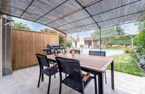 Travel with your family to the department of Aude and spend your vacation in this beautiful vacation home. With your loved ones you can look forward to plenty of space and two floors that will satisfy all your wishes. The friendly and cozy interior will provide you with everything you need to relax and unwind. Organize joint cooking evenings in the kitchen or relax with an entertaining movie on the sofas. In the evening, barbecue on your private and covered terrace and enjoy a local wine. The adjoining communal garden offers you a great place to swim and sunbathe with a sundeck, pool and outdoor shower, and socialize with your neighbors.