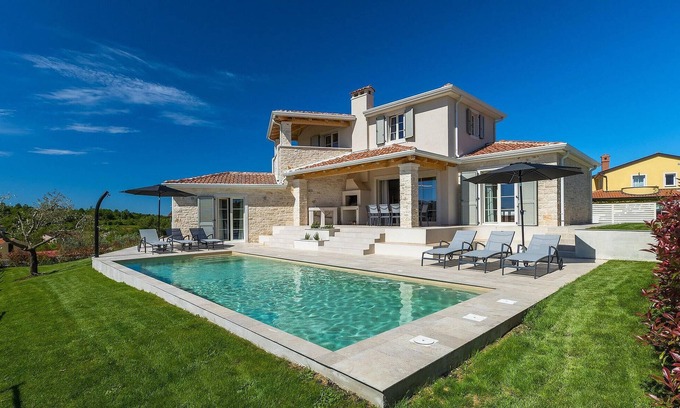 Let yourself be enchanted by the idyll of Istria - Villa Ulivo is located in the picturesque village of Vizinada, just 20 km from the coastal towns of Porec and Novigrad. With 4 comfortable bedrooms, it can accommodate up to 8 people. Let's take a quick tour!