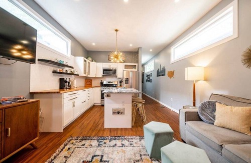 Charming home for up to four guests in a serene neighborhood. Features a luxurious king bed, twin bed with trundle, modern kitchen, and cozy living area. Enjoy high-speed Wi-Fi, complimentary parking, and easy access to Fountain Square and downtown attractions.