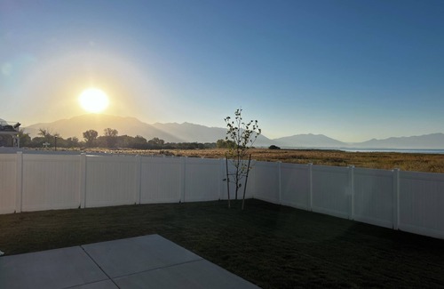 Get ready to relax and get cozy in this beautiful 4-bedroom home in American Fork. This home backs up to Utah lake which provides an incredible view of the Lake. This awesome property features 3 queen beds, 2 full beds, and a portable crib for the little ones. Enjoy the three separate living rooms with large TVs. Plenty of space for a large group to spread out. The kitchen is fully stocked-you'll have everything you need for a comfortable stay. Plenty of dishes and cookware including an instant pot, pancake griddle, waffle iron, coffee maker, and a large crockpot. There is an xbox and a cabinet filled with games ensuring the whole family will have a great time.