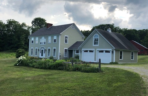 Our home comfortably sleeps 6 adults or two families with kids. It has a fully equipped kitchen, two working fireplaces and free wifi. Outside we have a firepit, patio table, chairs, large weber grill, and seating area. There is a small pond, open fields and woods to enjoy. Every season offers a variety of outdoor activities nearby and on the property. We are located thirty minutes from downtown Woodstock and just a few minutes from the exceptional hiking and mountain biking trails on Mt. Ascutney.