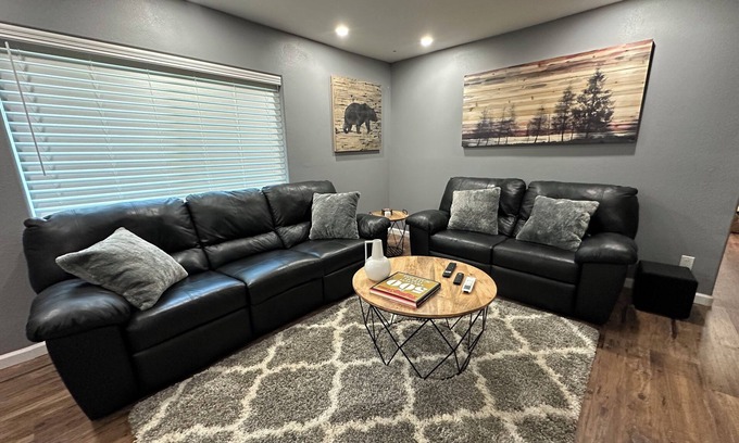 This fabulous house in Columbia is the base camp for your adventures in the Sierra Foothills ! Yosemite, snow skiing, river rafting, hiking, horseback riding, fine dining, wine tasting, live music and more is just a short drive away ! Situated on a full acre of natural beauty and tasteful landscaping, this property is newly renovated and combines rustic architecture with a modern high tech vibe. Amenities include full laundry, gourmet kitchen with brand new Samsung appliances, Tesla Charger -( contact owner for access at additional charge) 65” Sony 4K TV with 9.1 surround sound in Family Room, Smart TVs in both bedrooms, high speed WIFI by Xfinity, smokeless fire pit, stainless steel BBQ and much more !!