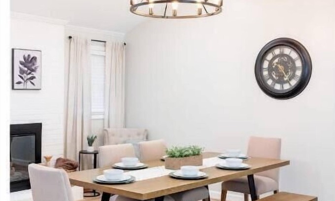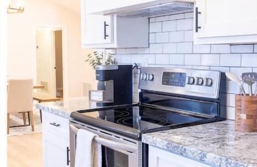 This beautiful, recently modernized house near Greenville, Taylors, and Greer is a STEAL, and books quickly! Perfect for families, this property includes a hot tub, a desk for office space, 2 queen bedrooms, and an extra bedroom with 2 full beds and a twin pull-out bed. Enjoy a furnished kitchen with pans, dishes, and a beverage bar featuring coffee and hot cocoa. High-speed internet streams cable and includes subscriptions for these family-friendly apps: Disney+, Hulu, and Paramount+. The backyard is fully fenced in.