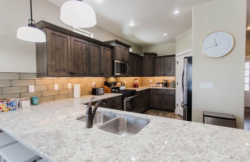 Welcome to this quaint and entertaining home in Idaho. Sit and unwind in your private hot tub on the back patio. Directly across from the home is a community pool, playground, and 1-acre park with a basketball court. If that isn't enough the game room will have you fully entertained with a pool table, ping pong, foosball, and darts. The garage is not heated or cooled. Inside features four bedrooms and two bathrooms. Sleeps 8 with comfy beds and linens. You'll enjoy multiple smart TVs, a great kitchen full of cooking supplies, and a complimentary coffee station. This home has it all.
