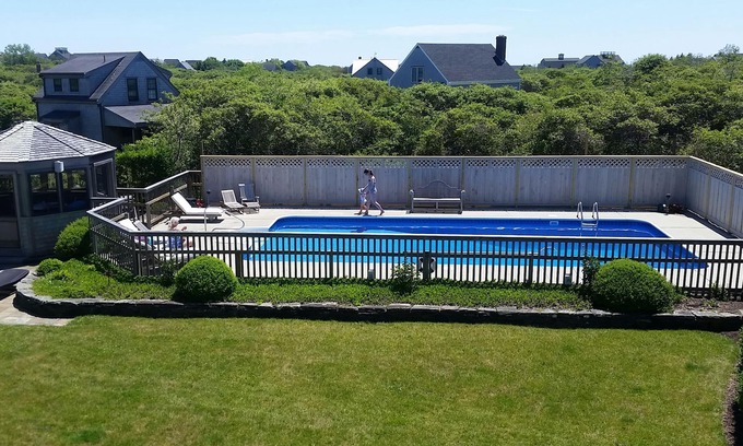 We welcome you to a beautifully constructed upside-down colonial home with covered front porch and 2nd floor deck to watch the picturesque Tom Nevers sunsets. Your home away includes 4 bedrooms and 3.5 baths with central air conditioning and wifi. Outside you will find a private fenced in heated large pool, screened in gazebo, large heated private outdoor shower and large landscaped yard with playground and basketball court.