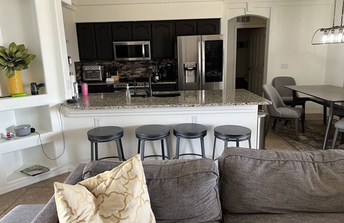 Come and enjoy our personal home away from home! Lake Havasu is a great place to stay. Come visit for a few days or stay for the week. Water is refreshing. 4BD/2BA Built in 2002, new pool and spa built in 2021, extremely clean home comes fully furnished. Large Master suite with king size bed with new mattress & TV. walk in closet, double sinks, walk in shower. Second bedroom is a comfortable guest room with queen bed and TV. Third and Fourth bedrooms offers two full beds in each room. Washer and dryer in home laundry room. Home offers AC, Large TV’s, Free Wi-Fi, reverse osmosis water and soft water systems. Long side driveway to park boat, cars or motorhome. Outside patio offer plenty of seating, along with BBQ Grill and Smoker. Open land for off-roading is only about 200 yards from the house.