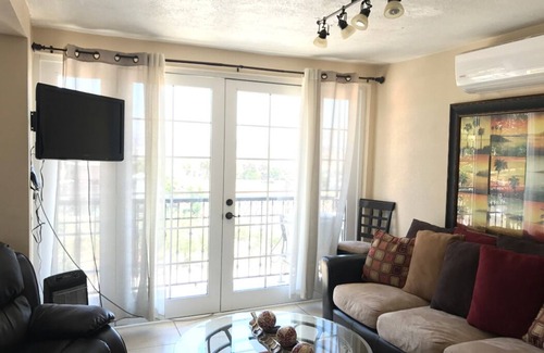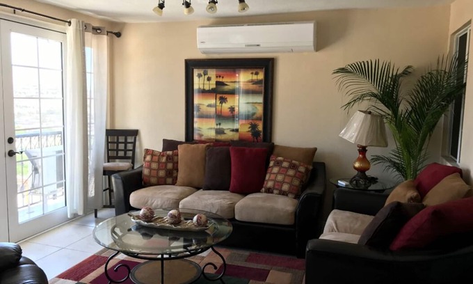 Beautiful Condo with lush and modern interior details! Comes with 2 bedrooms with 1 queen size bed in each room with comfy mattresses. House is fully furnished. The kitchen is fully functional with running water and the bathroom has full plumbing. Living room has a patio and TV included with nice and cold A/C unit. WiFi is included. Close to Zona Rio, Otay Border. Only 20 minutes away from the beach and less than 10 to main city. Also extremely close The American Consulate.