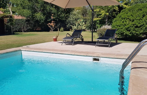 Beautiful large house with a huge garden, swimming pool and wide common areas ideal for big familie or big groups. Located in Chacras de Coria, a neighborhood of wineries and vineyards, known for its wines and its cooking.