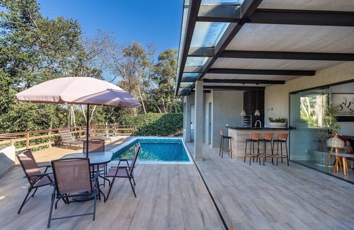 Casa Linda is for those looking for all that the Itaipava mountains in Rio de Janeiro have to offer. Our modern house welcome families and friends with great comfort. 4 suites with air conditioning, sauna, swimming pool and barbecue. The large living room integrated with the dining room and next to the gourmet area provides everything that your family seeks in a vacation home. The view of the mountains is incredible and the condominium is quiet and easily accessible from the center of Itaipava.