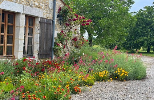Refurbished Perigord House on 5000 sqm private land/garden with beautiful view on the countrtyside. High standing. No facing properties. very quiet. Located 900 m from a small village with shops, supermarket, pharmacy, doctors, restaurants, bars. 15 kms from Bergerac international airport and Bergerac train station. Very large main room/living room (90 sqm) with fully equipped open kitchen (2 ovens, dishwasher, microvawe, 2 fridges/freezer,blender, expresso machine, toater etc...), big fire place, another lounge/tv room on the mezzanine level with flat screen TV, DVDs, WIFI), 5 double bedrooms, 3 bathrooms (2 ensuite bathrooms), 3 toilets. Covered terrace/patio with outdoor teck table and chairs for 10 persons. Private swimming pool with automatic hard cover. Pool house/summer kitchen with shower and toilet. 10 deck-chairs, 2 barbecues. Bedlinen/house linen/towels are included.