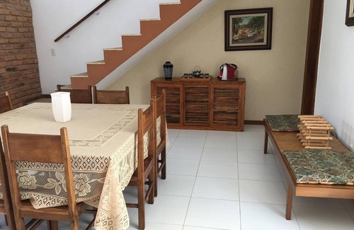 House with three complete suites, all with air conditioning, toilet, kitchen and living and dining rooms. Barbecue on the back porch of the house. Not terraced, on wide ground. Accommodates up to 10 people. Cable TV and Wi-Fi. Parking in front of the house.