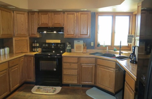 The main level of the house has a furnished kitchen with fridge, electric range/oven, microwave, coffee pot, and complete laundry room. The main level also contains a dining room, living room with fireplace, half bath and large windows. The master bedroom is also on the main floor and includes a king sized bed, and a private bathroom complete with a walk in shower and jacuzzi tub. On the lower level you will find a family room with large screen TV and walk out patio, bedroom with 2 queen beds, bedroom with 1 full bed, kids play room, and a full bathroom with shower. We also have two air mattresses and a pack-and-play. It has a two-car attached garage for your vehicle! If you need more room, check out our other rental property which is at the same location-North Wheeler Getaway Bunkhouse!