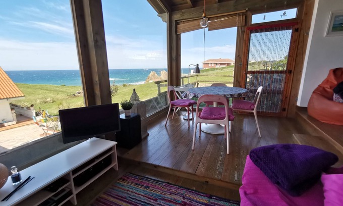 TOTALLY NEW!!! The Orange House is a magical place next to Arnia beach, in a unique environment, offering superb sea views. The house is built and decorated with love to enjoy the excellent views over the cliffs of the Arnia and the magnificent sunsets. It has 2 bedrooms, one with double bed (135x200) and one with two bunk beds 90x200. Also the living room has a sofa bed 140x200. It has a bathroom with shower. Is fully equipped with sheets, duvets, towels, heating, kitchen with microwave, two refrigerators, pots, pans, paella pan, blender, TV 22 ', DVD, Cable TV, Hi-Fi, washer / dryer, hair dryer, iron, etc.