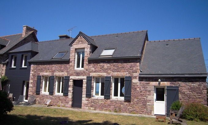 STONE HOUSE OF 165m2, VERY PLEASANT AND EASY TO LIVE. ALL EQUIPPED. CALM. EXCEPTIONAL SITUATION BETWEEN COUNTRYSIDE AND SEA. 8 people maximum. LIVING-DINING ROOM> 50m2. 3 BEDROOMS WITH DOUBLE BED INCLUDING A PARENTAL SUITE, 1 BEDROOM WITH SINGLE BED, 1 BEDROOM WITH BUNK BEDS. 2 TV AND DVD PLAYERS, GARDEN AND FULL SOUTH TERRACE, PING PONG TABLE, BBQ, WILD BEACHES DIRECT WALKING ACCESS (8 mn), AND SUPERVISED BEACHES. AUTHENTIC AND PRESERVED ENVIRONMENT. CLOSE TO SITES TO VISIT CAP FREHEL / FORT LA LATTE / CAP D'ERQUY / DINARD / SAINT MALO / ST CAST ... WALKS AND WALKS. ANIMATIONS AND ACTIVITIES NEARBY. TENNIS GOLF HORSE RIDING KARTING ACCROBRANCHE ... NO PETS. TERRACED HOUSE.