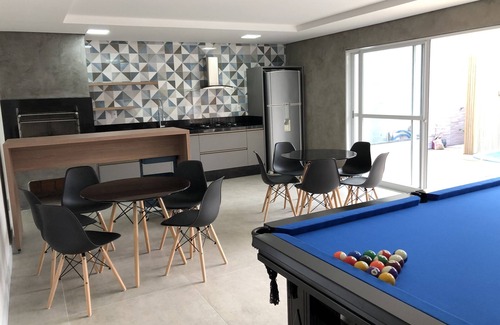 New house, 4 bedrooms and 3 large suites, a small bedroom with bunk bed, (we provide mattresses if needed), bathroom, laundry, swimming pool, barbecue and games room. Practical, wide and cozy.