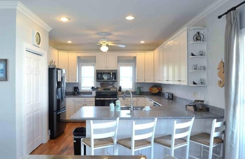 "Paradise Point" is the perfect getaway for a family, friend, or couple's vacation. At "the point" you will enjoy Panoramic Views of both the Shallotte River and the beautiful intracoastal waterways. Paradise Point has a beautiful Pier to fish, hang out, or just watch the boats go by. We have a refreshing pool. You have the option to heat the pool for an additional fee, any time of the year! Paradise Point also has a floating dock perfect to store your boat, take a ride in the kayak or to enjoy as you play in the water. Spend the day laying in the hammock and an evening in the hot tub or around the fire pit! It is a short drive to either Ocean Isle Beach or Holden Beach. At the point you will be close to the beach, yet at a private, serene getaway. Paradise Point has 2 bedrooms and 2 baths downstairs. All bathrooms have been recently renovated. Upstairs you will find 2 bedrooms and one bath plus a bunk area and loft with comfortable seating and a smart TV. There is free wifi throughout the house. On the main level there is a fully stocked kitchen. 4 people can sit at the island and there is a table that sits 6-8 guests. The family room has reclining chairs and a 65" TV mounted over the electric fireplace. But, the most breathtaking part of the house is stepping out to the oversized deck. The deck has an eating area, a propane firepit with captains chairs, a propane grill and a screened porch. Under the porch we have an underdeck with a hot tub, tiki bar, charcoal grill, and sitting area. Under the house, we have a ping pong table! Within walking distance is a fabulous restaurant, The Inlet View Bar and Grill (open mid February to end of November). The kids can enjoy endless hours playing in the pool, playing ping pong, looking for sea shells or hermit crabs, catching stone crabs in the crab trap or playing in the sand area down by the water. Paradise Point is a great location with lots to do for children and adults of all ages!