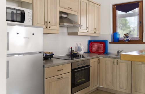 Our holiday property has 900m²- the house (160m²), pool (40m²) and wooden beach area (60m²), parking places (3), garden area around the house and outdoor kitchen with grill. It is fully equipped and comfortable for 8 persons. It has 4 bedrooms: 3 bedrooms have double bed, and one bedroom has 2 single beds. 2 bathrooms (hot and cold water, shower over bath and bathtub) and 1 toilet. There is big airy living room, kitchen (hot and cold water, electric cooker, refrigerator, cooker hood, deep freeze, coffee machine, microwave, oven, dishwasher, toaster...) and spacious dining room with big table. Also, there are 5 air condition units. In natural site, our yard has open terrace, covered terrace, garden furniture, outdoor grill, table tennis, big chess field, little toboggan and 3 parking places.