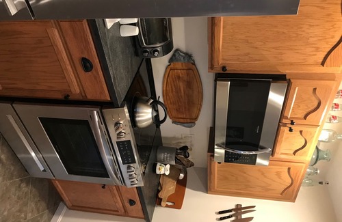 The master bedroom is large and features a very comfortable king-sized bed, TV and DVD. The ensuite bathroom was just re-done with granite vanity tops - a very crisp and modern look with a deep tub for soaking after a day on the slopes. The second bedroom, also quite large, has two twin beds which can be converted to a queen, a TV and DVD, and its own full remodeled bathroom. There is a built-in washer-drier.